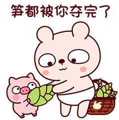A Tkthao219 Lengtoo bear takes bamboo shoots from a pig, with the caption 'You've taken all the bamboo shoots'.