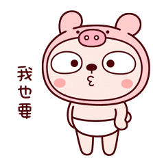 Tkthao219's cute baby-like character in a pink pig costume says "I also want" with an eager expression.
