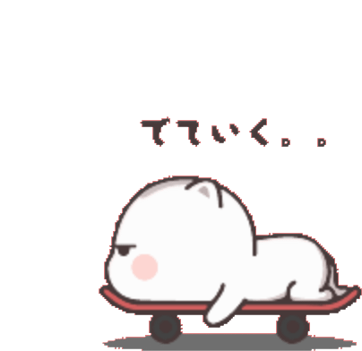 Tkthao219's Peach character, a cute white blob, skates away on a red board with Japanese text 'てていく。' appearing.