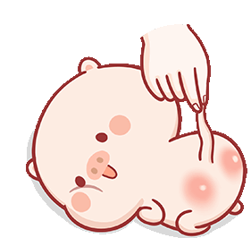A cute, sleepy cartoon pig lies on its back, receiving a gentle pat from a hand. Perfect for expressing comfort or affection.