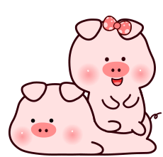 A charming Tkthao219 sticker featuring two adorable pink cartoon pigs, one lying down while the other sits happily on its back.