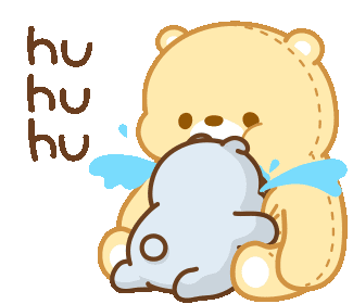 A sad Tkthao219 Tonton bear comforts a smaller blue character, both crying with 'hu hu hu' sounds.