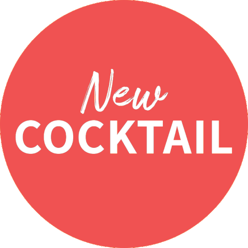 A bold red circular sticker featuring the words 'New Cocktail' in white, ideal for promoting new drinks.