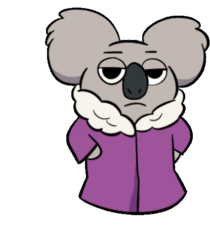 The Wbb koala, from Ursos Sem Curso, expresses indifference with 'Tô Nem Aí' (I don't care) while wearing a purple coat.