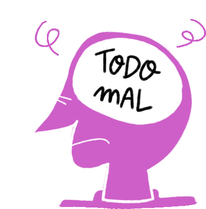 A purple head with a sad expression and 'Todo Mal' (Everything bad) written inside, by Omar Janaan.
