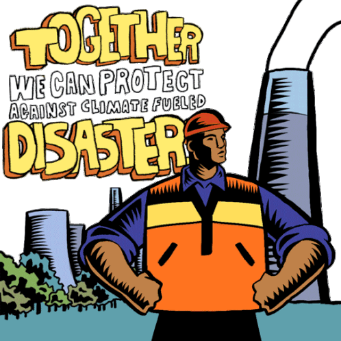 Together We Can Protect Against Climate Fueled Disasters Construction Worker Sticker