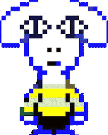 a pixel art drawing of a sheep with a yellow shirt on