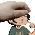 Masha from The Owl House receives a comforting head pat, showing a pleased expression in this animated sticker.