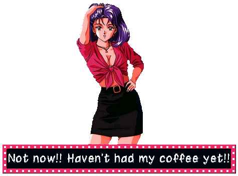 a pixel art of a woman with the words not now haven t had my coffee yet