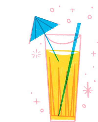A vibrant illustration of a Tom Collins cocktail, complete with a blue umbrella and green straw, sparkling with cheer.