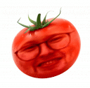 An animated sticker of a red tomato rotating, featuring the letter 'B' clearly carved into its surface.