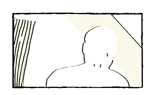 An abstract, glitching face with fangs and a tear-like shape, presented in a stark black and white style, reminiscent of a distorted TV screen.