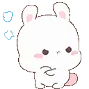 Tonton Tobi, the chubby bunny from Tonton Friends, smiles sweetly while sending out small flower-like shapes.