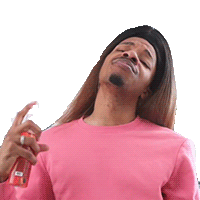 Tony Talks (iamtonytalks) sprays himself with a bottle, head tilted back, enjoying the refreshing sensation.