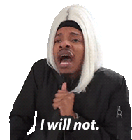 Tony Talks, also known as Iamtonytalks, firmly states 'I will not' with a defiant expression, wearing a white wig.
