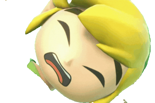 a cartoon character 's head is upside down and has a yellow hair