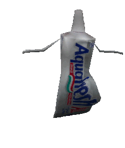 A tube of Aquafresh toothpaste with arms running across the screen, a playful and animated character.