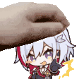 Topaz from Honkai: Star Rail looks up happily as a hand holds a delicious donut above her head, a sweet moment.