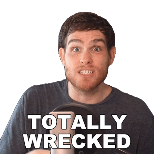 Sam Johnson reacts with a surprised expression, accompanied by the text 'TOTALLY WRECKED', perfect for expressing shock or defeat.
