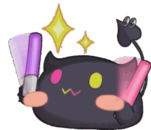 Towa Bibi's black cat character holds a vibrant purple and pink light stick, ready for fun.