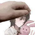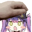 Towa Petpetpet from Slow Damage gets a hat placed on their head by a hand in this charming pixel art animation.