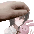 a pixel art of a girl holding a stuffed bunny .