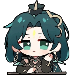 Tower Of Fantasy's Ling Han in a cute chibi style, resting her chin on her hand with a thoughtful expression.