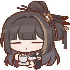 Maestre Yu from Tower of Fantasy calmly sips a cup of tea, a serene and charming moment captured in this animated sticker.