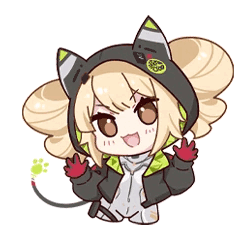 Shiro from Tower of Fantasy, wearing her iconic cat-hooded jacket, in a charming animated sticker.