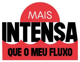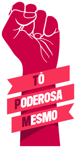 A powerful red fist graphic with 'poderosa mesmo' text, promoting the 'Chega De Estigma' campaign against menstruation stigma and PMS.