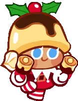 A pixel art sticker featuring a rotating mooncake or traditional cake, designed in a yin-yang style with dark and light halves.