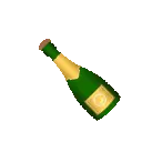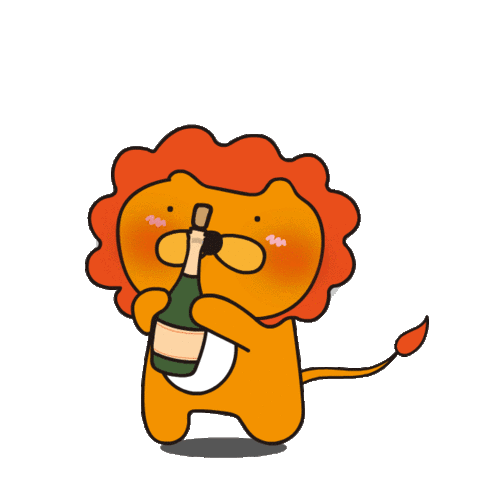 A cartoon lion character excitedly sprays champagne from a bottle, with liquid splashing around its head.