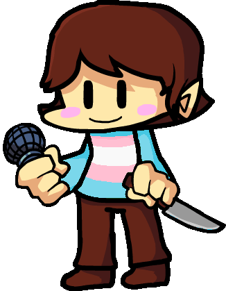 Trans Chara, an FNF character, holds a microphone and a knife, ready for a musical battle or a playful challenge.