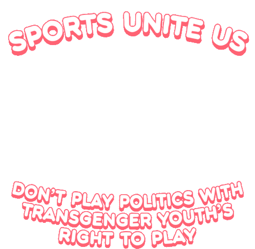 Powerful message: 'Sports Unite Us' and 'Don't Play Politics With Transgender Youth's Right To Play' with hands clasping.