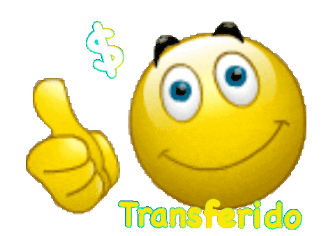 Happy yellow smiley face gives a thumbs up with a money symbol, confirming a successful transfer.