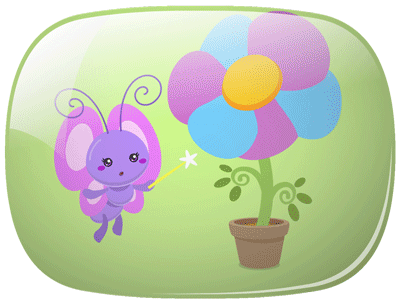 A purple fairy from Galinha Pintadinha uses magic to transform a colorful flower into a stinky shoe.
