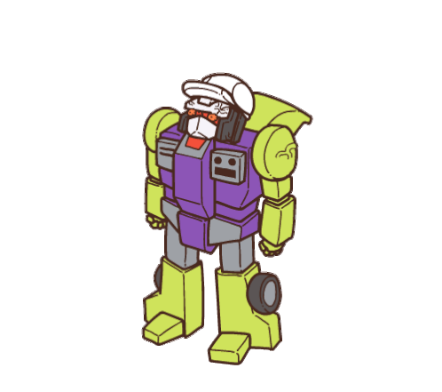 A green and purple Transformers Constructicon robot, possibly Miekun, expresses rage, holding its head in frustration.