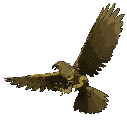 An animated sticker featuring a majestic, mechanical Transformers-style eagle with golden-brown plumage, soaring through the air and breathing a powerful stream of fire.