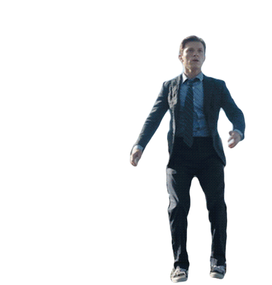 Tom Holland as Peter Parker transforms into Spider-Man, getting ready for action in a fighting stance.