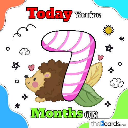 a card that says today you 're 7 months old with a hedgehog