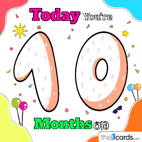 a colorful greeting card that says today you 're 10 months old