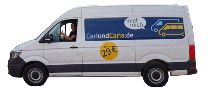 CarlundCarla Transporter Carlos mit einem Fahrer und Daumen nach oben.