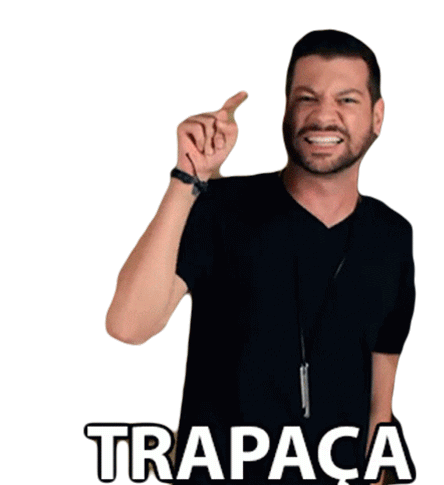 Galo Frito points accusingly with the word 'TRAPAÇA' (Cheat) below, perfect for calling out cheating.