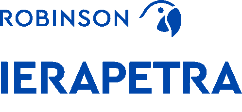 Animated logo for Robinson Ierapetra, featuring a blue parrot, representing travel and holidays in Greece.