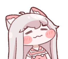 A cute cat-eared girl from Trickcal Revive lets out a satisfied burp after a meal, looking relaxed and happy.