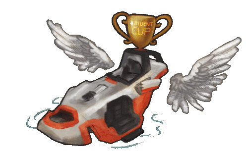 A stylized Trident flying car from Apex Legends, adorned with wings and the golden Trident Cup trophy.