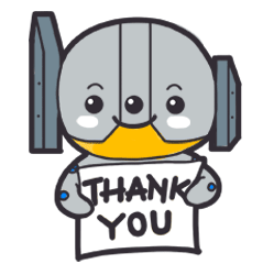 A cute, friendly robot character holds a sign that says "THANK YOU" with radiating lines of appreciation.