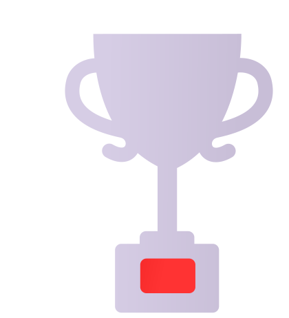 A stylized champion trophy, possibly for Gisero or Master Gis, featuring a silver design and a prominent red plaque.