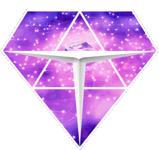 A vibrant Troverse Tromie diamond logo, featuring a sparkling purple galaxy background and sleek white geometric designs.