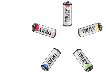 Multiple Truly Hard Seltzer cans with various flavors rotate in a circular pattern.